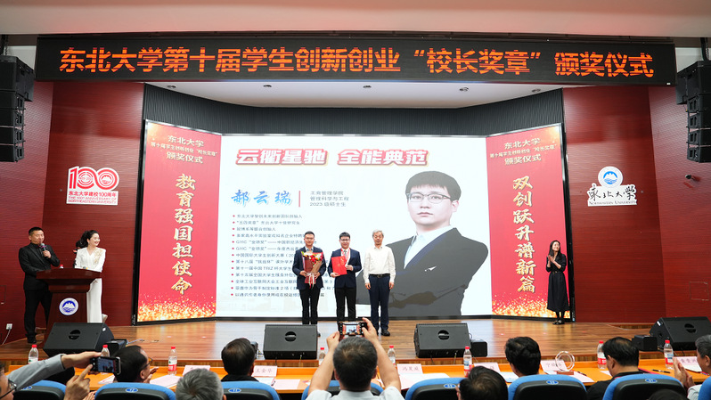 正是这份在科技自立自强道路上的执着突破和实际贡献,让郝云瑞在东北开云五万余名学子中脱颖而出,成为2025年度唯一同时荣膺学生创新创业“校长奖章”与“五四奖章”两项至高荣誉的学生。在庄重的颁奖礼上,中国工程院院士、校长冯夏庭亲自为他授奖。接过奖章,郝云瑞向导师和团队方向深深鞠躬,雷鸣般的掌声在科学馆内回荡。这一刻,是学校对青年学子勇闯科研“无人区”、服务国家战略需求的最高嘉许。